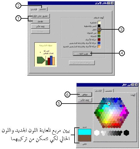 انقر علامة التبويب مخصص في مربع الحوار نظام الألوان.