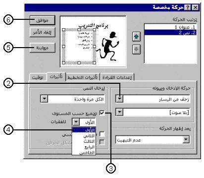 يمكنك جعل النص يظهر في اتجاه عكسي: لجعل النص يظهر في اتجاه عكسي، كظهوره من البند النقطي الأخير حتى الأول مثلاً، انقر مربع الاختيار في ترتيب عكسي لانتقائه.